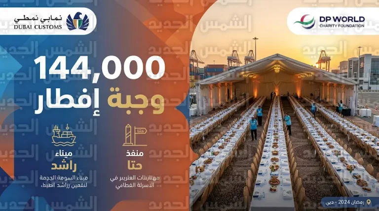 جمارك دبي تستهدف توزيع 144 ألف وجبة إفطار بنهاية شهر رمضان 2026 بالتعاون مع مؤسسة دي بي ورلد الخيرية