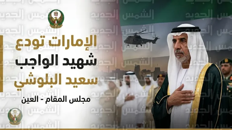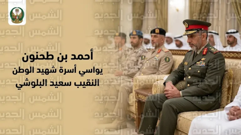 وفد عسكري رفيع برئاسة أحمد بن طحنون يقدم واجب العزاء في الشهيد سعيد البلوشي بعد استشهاده في حادث سقوط طائرة
