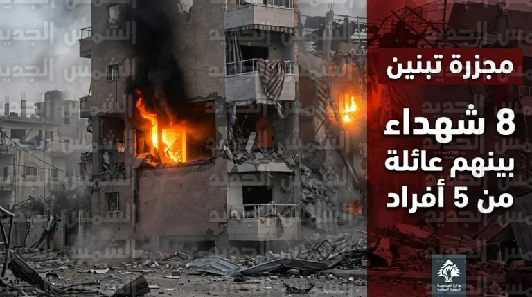 وزارة الصحة اللبنانية تعلن مقتل 8 أشخاص بينهم عائلة كاملة في مجزرة بلدة تبنين بالجنوب