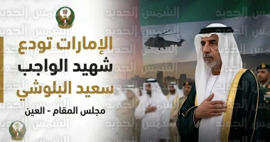زار معالي الشيخ نهيان بن مبارك آل نهيان مجلس العزاء المقام في “مجلس المقام” بمنطقة العين، حيث التقى بأسرة وذوي الشهيد البلوشي، وأعرب معاليه عن تضامنه الكامل مع أسرة الفقيد، مشيراً إلى أن الشهيد قدم أسمى صور العطاء والولاء للوطن، سائلاً المولى عز وجل أن يتغمده بواسع رحمته.