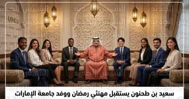 استقبل الشيخ الدكتور سعيد بن طحنون آل نهيان، اليوم الجمعة 13 مارس 2026 (الموافق 24 رمضان 1447 هـ)، في مجلسه العامر، وفداً من الطلبة الدوليين الدارسين في جامعة الإمارات العربية المتحدة، إلى جانب جمع من كبار المسؤولين والمواطنين والمقيمين الذين قدموا للتهنئة بمناسبة الأيام المباركة من شهر رمضان الفضيل.
