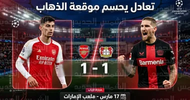انتزع نادي آرسنال الإنجليزي تعادلاً ثميناً من أنياب مضيفه باير ليفركوزن الألماني بنتيجة (1-1)، في المباراة التي جمعتهما مساء أمس الثلاثاء 10 مارس 2026، على ملعب “باي أرينا”، ضمن منافسات ذهاب دور الـ16 من بطولة دوري أبطال أوروبا، وبهذه النتيجة، يتأجل حسم هوية المتأهل إلى الدور ربع النهائي إلى موقعة الإياب المرتقبة في العاصمة البريطانية لندن.