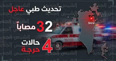 أكدت وزارة الصحة البحرينية أن الفرق الطبية باشرت التعامل مع 32 حالة فور وقوع الحادث، مشيرة إلى أن معظم الإصابات مستقرة، باستثناء 4 حالات بليغة تخضع حالياً لرقابة مشددة وتدخلات جراحية دقيقة، وهي كالتالي: