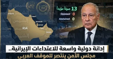 وأوضح المتحدث الرسمي باسم الأمين العام، جمال رشدي، في بيان صحفي صدر اليوم، أن القرار حظي بتأييد أغلبية ساحقة بلغت 13 صوتاً من أعضاء المجلس، مما يعكس الرفض الدولي الواسع للاعتداءات المتكررة، ويضع المجتمع الدولي أمام مسؤولياته في حماية سيادة الدول العربية واستقرار المنطقة.