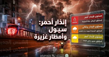 | مكة المكرمة، المدينة المنورة | أمطار متوسطة إلى غزيرة، سيول | إنذار برتقالي |