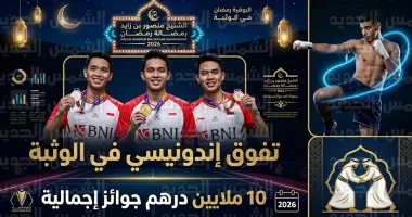 شهدت “بطولة الشيخ منصور بن زايد آل نهيان الرمضانية – الوثبة 2026” تفوقاً لافتاً للمدرسة الإندونيسية في رياضة الريشة الطائرة، حيث نجح لاعبو المنتخب الإندونيسي في الاستحواذ على كامل منصة التتويج لفئة الرجال، وسط حضور جماهيري كبير وتغطية إعلامية واسعة للحدث الذي يعد الأبرز رياضياً في شهر رمضان المبارك لعام 1447 هجرية.