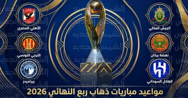 أعلن الاتحاد الإفريقي لكرة القدم “كاف” عن الجدول الرسمي لمباريات ذهاب دور الثمانية من مسابقة دوري أبطال إفريقيا لعام 2026، وتترقب الجماهير العربية مواجهات من العيار الثقيل تجمع كبار القارة السمراء في منتصف شهر مارس الجاري، حيث يشهد هذا الدور حضوراً عربياً طاغياً بوجود ستة أندية تسعى لخطف بطاقة التأهل إلى المربع الذهبي.