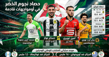 - تألق لافت لنجوم الجزائر في الدوريات الأوروبية الكبرى (الإنجليزي، الألماني، والفرنسي) خلال شهر فبراير.
