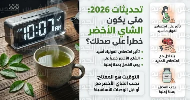 أصدر خبراء الصحة في المملكة العربية السعودية مع مطلع عام 2026 تحديثات هامة تتعلق بالعادات الغذائية اليومية، وتحديداً حول “توقيت” تناول الشاي الأخضر، ورغم الفوائد الكبيرة لهذا المشروب في تعزيز صحة القلب والدماغ، إلا أن الدراسات الحديثة تؤكد أن تناوله في أوقات خاطئة أو مع أطعمة معينة قد يحول فوائده إلى أضرار صحية جسيمة أو يفقد الجسم القدرة على الاستفادة من العناصر الغذائية الأساسية.