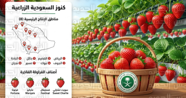 نجحت المملكة في توسيع نطاق زراعة الفراولة اعتماداً على الميز النسبية والمناخية لكل منطقة، حيث أظهرت تقارير الوزارة الصادرة اليوم انتشار المحصول في: