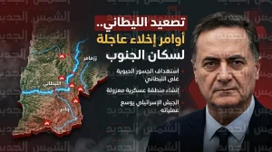 إنذار إسرائيلي عاجل لسكان جنوب لبنان بالإخلاء الفوري والتوجه إلى شمال نهر الزهراني