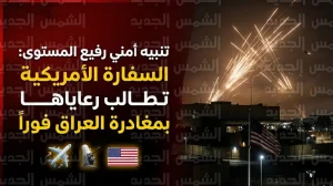 السفارة الأمريكية في بغداد تحث رعاياها على مغادرة العراق فوراً وتؤكد تعرض مجمعها لهجوم صاروخي