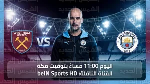القنوات الناقلة لمباراة مانشستر سيتي ووست هام اليوم السبت 14-03-2026 في الدوري الإنجليزي