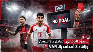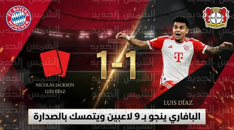 بايرن ميونيخ يحافظ على صدارة الدوري الألماني بتعادل درامي أمام ليفركوزن بـ 9 لاعبين