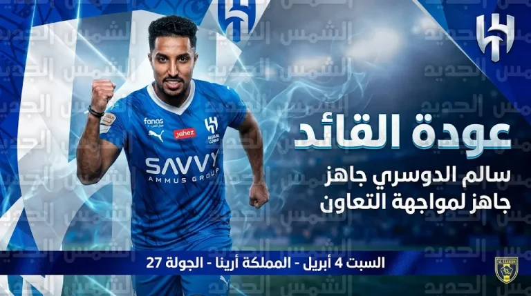 جاهزية سالم الدوسري للمشاركة في مباراة الهلال والتعاون بعد تعافيه من الإصابة