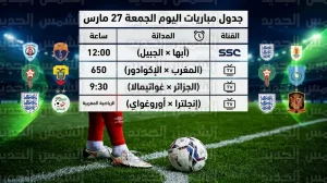 جدول مباريات اليوم الجمعة 27-03-2026 في دوري يلو والوديات الدولية والقنوات الناقلة