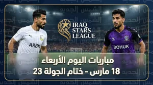 جدول مواعيد مباريات اليوم الأربعاء 18-3-2026 في ختام الجولة 23 من دوري نجوم العراق