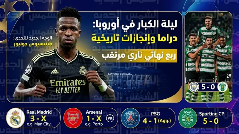 ريال مدريد يجدد تفوقه على مانشستر سيتي وريمونتادا خماسية لسبورتينغ لشبونة في ليلة حسم ربع نهائي دوري أبطال أوروبا