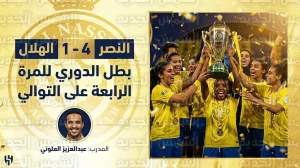سيدات النصر بطلات الدوري السعودي للمرة الرابعة توالياً بعد اكتساح الهلال برباعية في ليلة التتويج