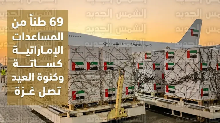 طائرة مساعدات إماراتية تصل مطار العريش محملة بـ 69 طناً من المؤن الرمضانية وكسوة العيد لدعم أهالي غزة