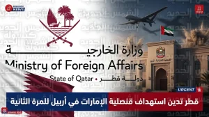 قطر تدين بشدة الهجوم الإرهابي الثاني على قنصلية الإمارات في إقليم كردستان وتؤكد تضامنها الكامل مع أبوظبي