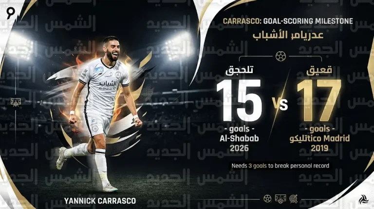 كاراسكو يقترب من تحطيم رقمه التهديفي مع أتلتيكو مدريد بعد وصوله لـ 15 هدفاً مع الشباب