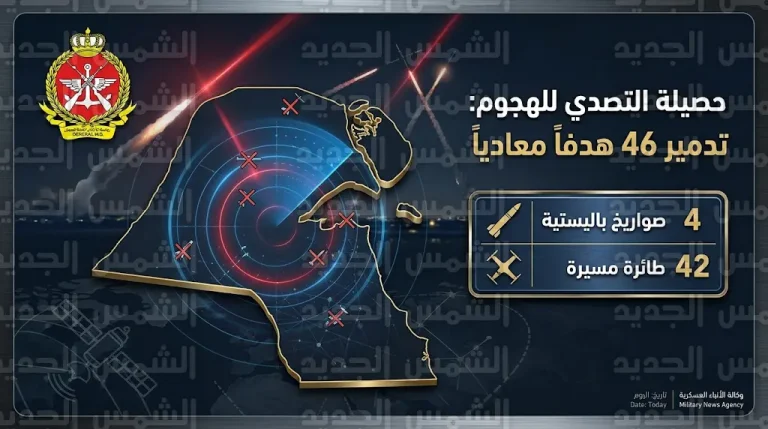 الدفاعات الجوية الكويتية تعلن تدمير 4 صواريخ باليستية و42 طائرة مسيرة استهدفت منشآت حيوية