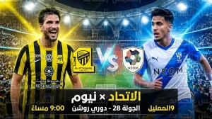 القنوات الناقلة لمباراة الاتحاد ونيوم اليوم في دوري روشن السعودي 2026 والموعد بتوقيت مكة