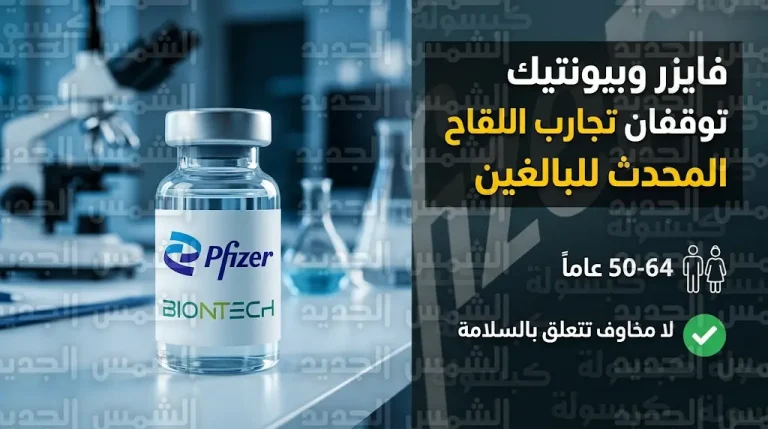 بقرار رسمي.. فايزر وبيونتيك توقفان دراسة سريرية كبرى للقاح كورونا المحدث للفئة العمرية 50-64 عاماً