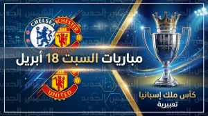 جدول مباريات اليوم السبت 18 أبريل 2026 والقنوات الناقلة.. صدام تشيلسي والمان يونايتد ونهائي كأس ملك إسبانيا
