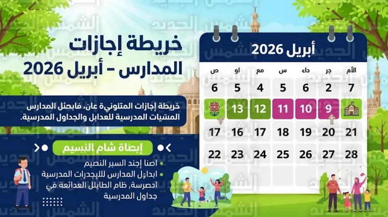 جدول مواعيد إجازات المدارس في أبريل 2026 لجميع الطلاب في مصر