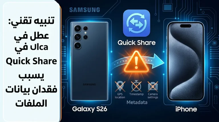 سامسونج تقر رسمياً بوجود خلل تقني في ميزة Quick Share وتكشف تفاصيل فقدان بيانات الملفات عند النقل للآيفون