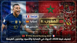 فرنسا تعتلي صدارة تصنيف فيفا لعام 2026 والمغرب يواصل زعامته العربية والإفريقية بالمركز الثامن