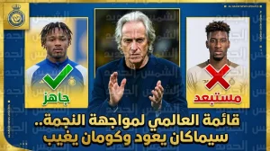 دفعة قوية لنادي النصر بعودة سيماكان وكومان قبل مواجهة النجمة في دوري روشن