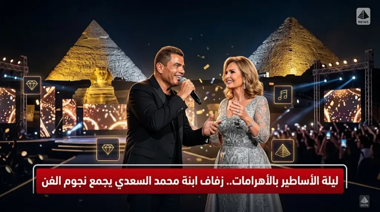 لقطات عفوية للهضبة عمرو دياب ويسرا تشعل حفل زفاف ابنة المنتج محمد السعدي بالأهرامات
