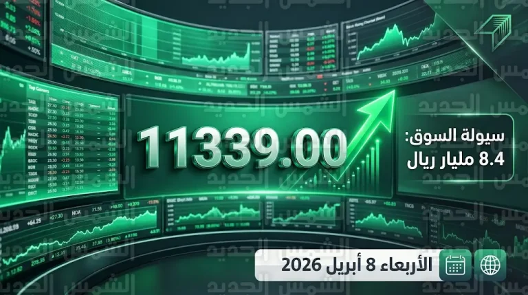 مؤشر تاسي يغلق عند 11339 نقطة بسيولة تتجاوز 8.4 مليار ريال بنهاية تعاملات الأربعاء 8 أبريل 2026