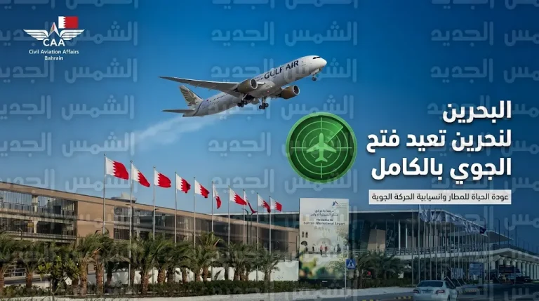 مملكة البحرين تعلن رسمياً إعادة فتح مجالها الجوي أمام كافة الرحلات القادمة والمغادرة والعابرة اليوم الأربعاء