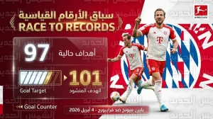 هاري كين يقود ثورة بايرن ميونخ التهديفية لكسر رقم ليفاندوفسكي التاريخي في الدوري الألماني