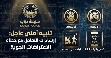 أصدرت القيادة العامة لشرطة دبي، اليوم الثلاثاء 17 مارس 2026، تنبيهاً أمنياً عاجلاً للمواطنين والمقيمين والزوار، شددت فيه على ضرورة توخي الحذر التام والابتعاد عن أي حطام ناتج عن عمليات “الاعتراضات الجوية”، يأتي هذا التوجيه في إطار حرص السلطات على تعزيز السلامة العامة وتجنب المخاطر التقنية أو المادية التي قد تشكلها هذه الأجسام المتساقطة.