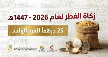 أصدر مجلس الإمارات للإفتاء الشرعي بيانه الرسمي اليوم الإثنين 16 مارس 2026، الموافق 27 رمضان 1447هـ، محدداً فيه الأحكام والضوابط الشرعية لزكاة الفطر لهذا العام، وأكد المجلس في بيانه على تيسير الأحكام بما يخدم مصلحة الفقراء والمزكين على حد سواء، مشدداً على أهمية إخراجها في وقتها المحدد شرعاً.