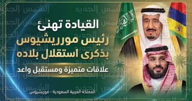بعث خادم الحرمين الشريفين الملك سلمان بن عبدالعزيز آل سعود، برقية تهنئة رسمية اليوم الخميس 12 مارس 2026، إلى فخامة الرئيس درهام جكهول، رئيس جمهورية موريشيوس، وذلك بمناسبة حلول ذكرى استقلال بلاده.