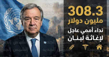 أطلقت منظمة الأمم المتحدة، اليوم الأحد 15 مارس 2026، نداءً دولياً طارئاً لجمع تمويل بقيمة 308.3 ملايين دولار أمريكي، يخصص بشكل مباشر لتلبية الاحتياجات الإنسانية الملحة في لبنان خلال الـ 90 يوماً القادمة، يأتي هذا التحرك الرسمي استجابةً للتدهور الأمني المتسارع والتصعيد العسكري الذي طال المدنيين والبنية التحتية، مما خلق أزمة إنسانية تتطلب تدخلاً دولياً فورياً لإنقاذ الأرواح.