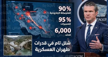 | الأهداف العسكرية المستهدفة | 6,000 هدف | ضربات دقيقة طالت العمق الإيراني |