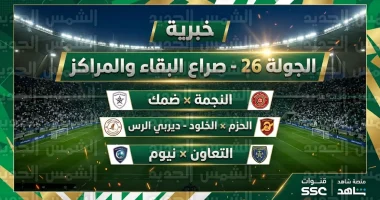 تنطلق مساء اليوم الخميس، الموافق 12 مارس 2026، منافسات الجولة الـ26 من الدوري السعودي للمحترفين، حيث تُقام ثلاث مباريات حاسمة تتركز أهدافها حول تحسين المراكز والهروب من شبح الهبوط، وتدخل فرق وسط الترتيب والمتأخرة هذه الجولة برغبة جامحة في حصد النقاط لضمان الاستقرار في مناطق الأمان بجدول الدوري لعام 2026.
