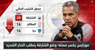 رقمياً، الفارق بين الشارقة (المركز الثامن) وأول مراكز الهبوط هو 4 نقاط فقط، مما يجعل الفريق في دائرة الخطر إذا استمر نزيف النقاط في الجولات المقبلة، لكن المدرب مورايس يؤكد قدرة الفريق على التصحيح.