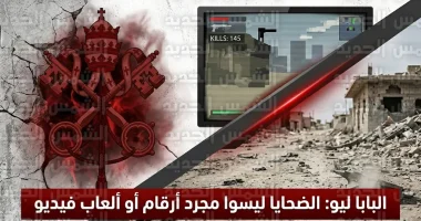 يقصد البابا ليو بذلك الطريقة التي يتم بها عرض لقطات القصف والعمليات العسكرية عبر الشاشات ومنصات التواصل، حيث تظهر أحياناً بشكل تقني بارد يركز على “الإثارة” ويغفل الجانب المأساوي والبشري للضحايا.