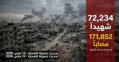 | إجمالي عدد القتلى (منذ 2023) | 72,234 شهيداً |
