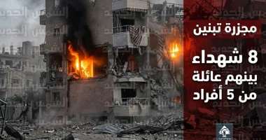 وزارة الصحة اللبنانية تعلن مقتل 8 أشخاص بينهم عائلة كاملة في مجزرة بلدة تبنين بالجنوب