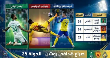تترقب الجماهير السعودية ما ستسفر عنه الجولات القادمة، خاصة مع الملاحقة المستمرة من الأسطورة البرتغالية كريستيانو رونالدو، قائد نادي النصر، الذي يملك في رصيده 21 هدفاً، يطمح رونالدو لتحقيق لقب الهداف للمرة الثالثة على التوالي في إنجاز تاريخي غير مسبوق في عهد الاحتراف، وفي المقابل، يظهر إيفان توني وجوليان كينونيس بمستوى تهديفي ثابت يهدد طموحات رونالدو، بينما يظل روجر مارتينيز رقماً صعباً في المعادلة الهجومية لصالح “سكري القصيم” برصيد 19 هدفاً.