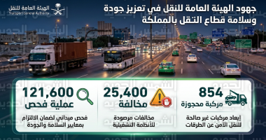 - رصد 25.4 ألف مخالفة تشغيلية وحجز 854 مركبة لضمان سلامة قطاع النقل البري.